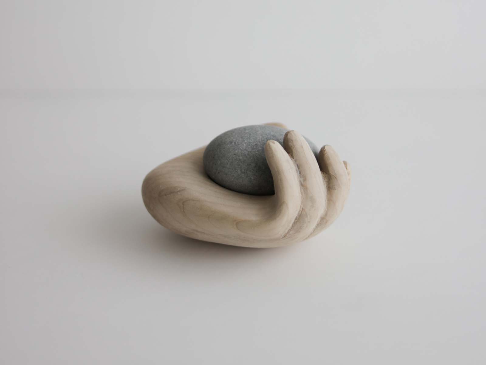 Sculptures made by combining or changing the relationship between nature's forms, such as stones, driftwood, and insect-eaten leaves found in everyday life, and forms created by myself.